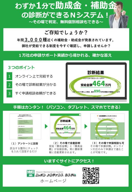 「補助金・助成金自動診断システム」をクリックして「Nシステム」へお入り下さい。